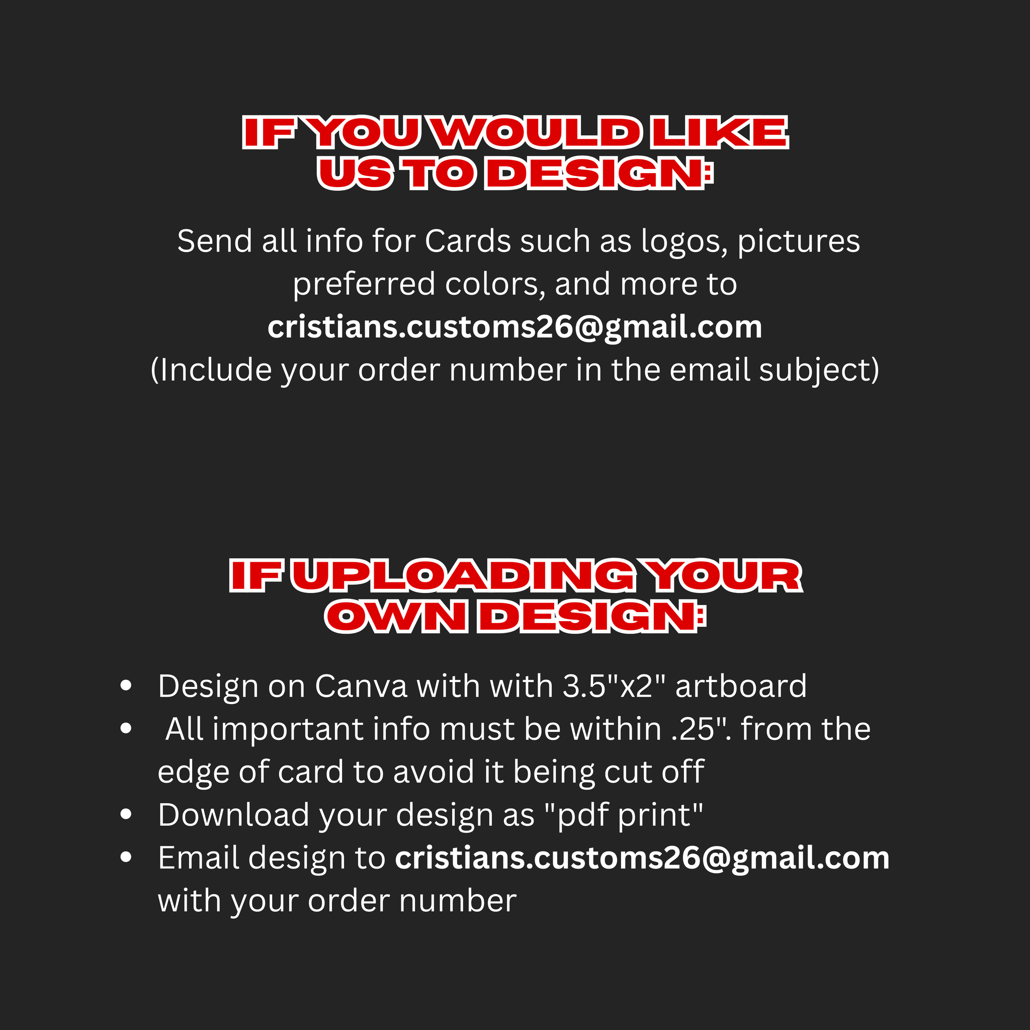 500 Cards / Yes design them for me (+$10) / no